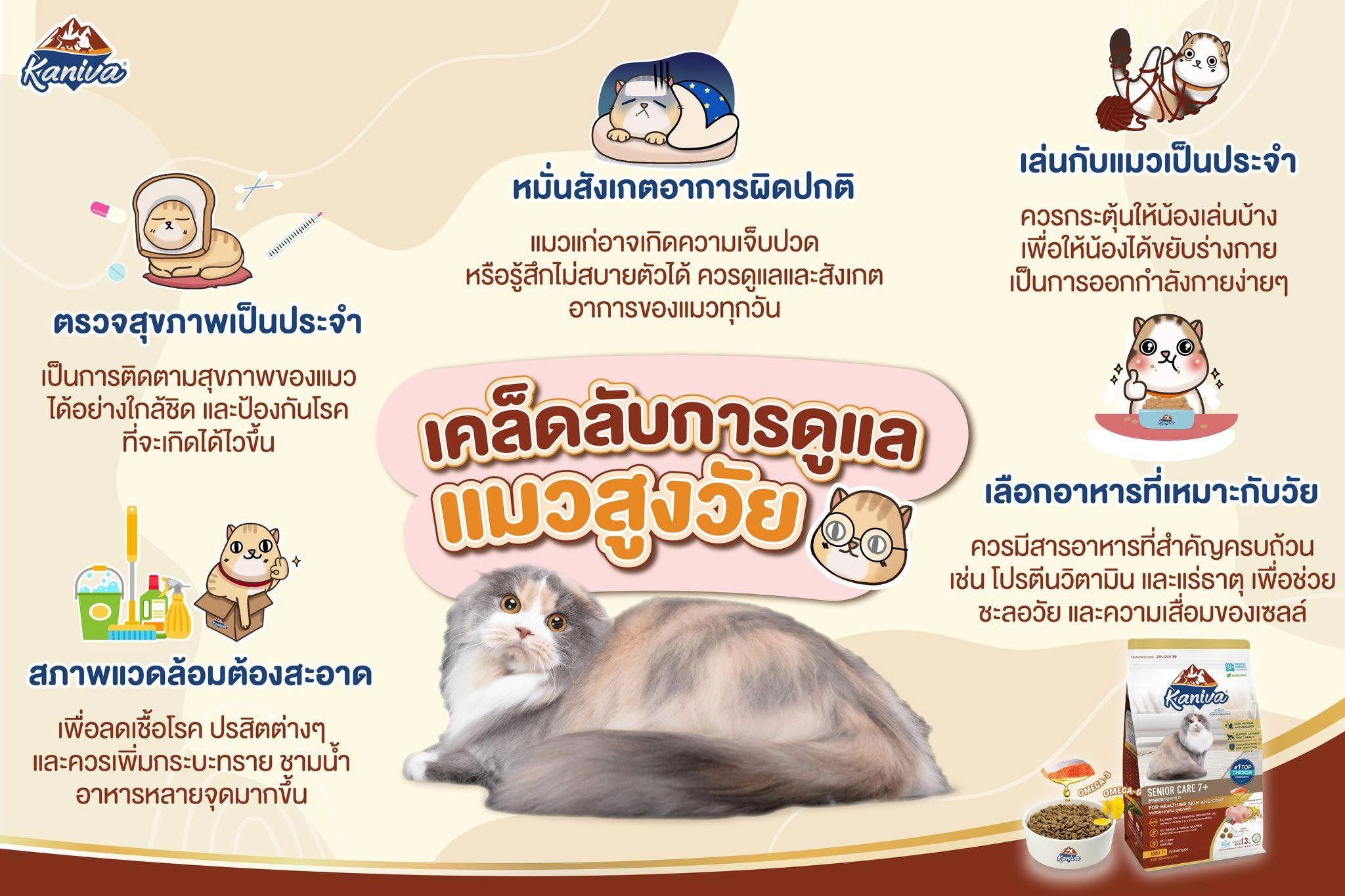แมวแก่อาจเกิดความเจ็บปวด หรือรู้สึกไม่สบายตัวได้ ควรดูแลและสังเกต อาการของแมวทุกวัน